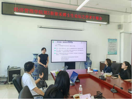 6月17日,英国上市公司365在成栋楼710会议室举办第五期青禾博士生论坛之学术午餐会。本次午餐会邀请学院2023级博士研究生贾亦蕾以《数实融合对产能利用率的影响研究—基于生猪企业的微观视角》为题进行学术分享。英国上市公司365副经理王洋、市场营销系教师张亚娟、会计系教师付静雯、农经系教师许佳彬及10余位研究生参会研讨。活动由许佳彬主持。