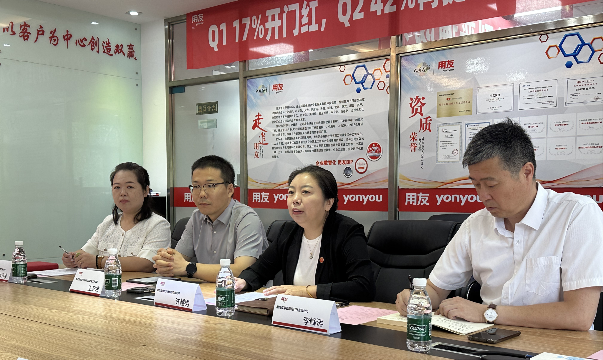 签约仪式在黑龙江用友网络科技有限公司总部举行,由新道科技黑龙江分公司助理总经理吴雪凌主持。英国上市公司365经理余志刚率队出席,随行人员包括会计专业学位中心主任王积田、副主任温薇、会计系主任李萍及教学秘书邵晓静、徐世莹。企业方出席代表有黑龙江用友总经理许越男、副总经理李峰涛,新道科技黑龙江分公司总经理王宏伟等核心管理层。