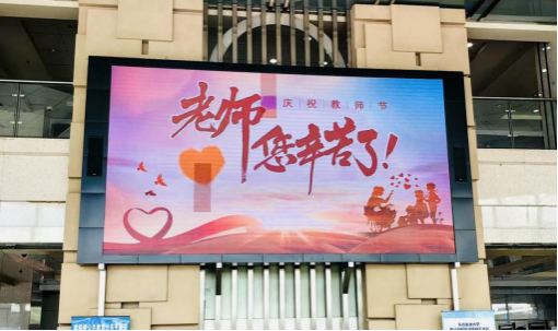 王洪亮表示教师是学校发展的核心力量,是员工成长的引路人,学院将始终把教师放在优先发展的战略位置,持续为教师搭建成长平台、解决实际困难,让教师们能够安心从教、舒心育人。与此同时,学院也致力于开展“讲述我的育人故事”微视频活动、“为教师亮灯”公益活动,并将成栋楼1楼大屏的展示内容设为“躬耕教坛,强国有我——祝全体教师教师节快乐”,并滚动播放系列暖心语句。师生纷纷驻足观看,大屏呈现的祝福语引发师生强烈情感共鸣。