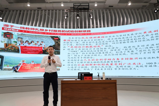 黄波结合团队深厚的基层实践积淀,围绕“艺术振兴乡村”的核心理念与落地路径展开了系统分享。他首先以浙江葛家村的“蝶变”为切入点,深入剖析艺术振兴乡村实践的项目背景与发展历程,生动阐释实践中探索形成的三大模式——“1243”循环村民培育模式、“挖宝-育人-造物-创业-运营”乡村服务模式,以及“发展庭院文化经济”的产业振兴模式。同时,通过详实的案例呈现与丰富的影像资料,直观展示艺术振兴乡村的多元服务成果,并总结提炼出一套可复制、可推广的典型经验。此外,他还围绕“微改造、精提升”、乡村建设原则、产业融合发展、乡村治理等具体内容展开深入阐述,为在场师生带来一场融合前沿理念与一线实践的精彩讲座。