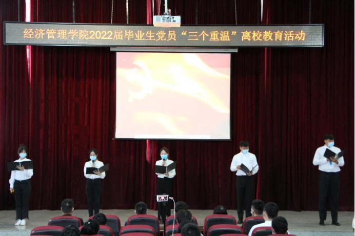 五名毕业生党员代表重温“入党志愿书”