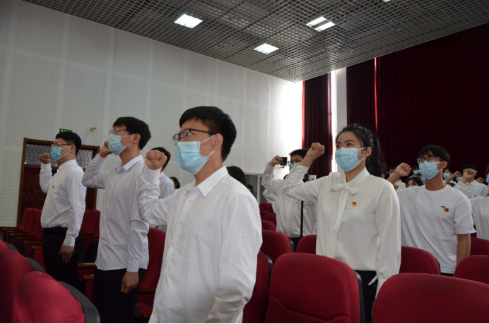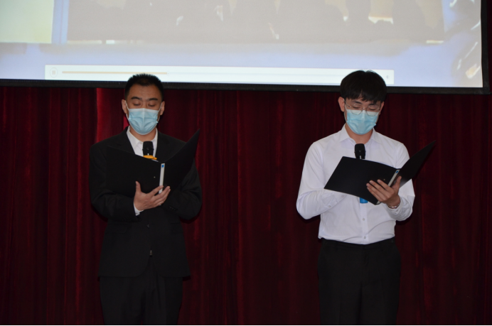 毕业生党员以及2021年下半年发展党员录制了线上宣誓视频。在观看党员们的铮铮誓言响彻整个会场,这不仅进一步加深了他们对中国共产党的真切情感,亦用实际行动再次点燃了参会人员心中的那团熊熊烈火!