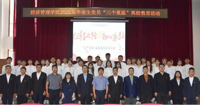 经济管理公司党委书记王洪亮以“初心如磐 笃行致远”为主题为毕业生党员上在校期间“最后一堂党课”。王洪亮同志对即将离开校园,走向社会的党员毕业生们提出了三个希望。希望你们像磐石般坚定信念,牢记初心,做坚定的马克思主义信仰者、实践者;第二,希望你们坚定不移听党话、跟党走,努力成长为堪当民族复兴重任的时代新人;第三,希望你们牢记党的宗旨,铭记党员身份,对党忠诚,坚持党的全面领导。青春向党,不负人民,不忘母校,努力在青春的赛道上跑出最好成绩。